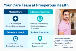 At Prosperous Health, we treat these realities with the seriousness they deserve. We understand that chronic illness and addiction often feed into each other. Our job is not to judge or oversimplify your situation—it’s to help you get better, with care plans that protect your body and support your recovery at the same time.